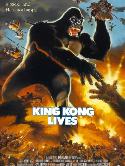 大金刚在军警围捕之下,终于从帝国下厦摔下受重伤,十年后,在乔治亚洲特兰大大学医疗研究,有机会再度复活。为此研发人工心脏,准备为她做换心手术,但要量同类的血液。正当大家一筹莫展时,米奇意外地抓到另一只母猿,并卖给政府以便进行手术,艾咪为此手术执刀,不料手术后的大金刚与母原从回原生地,逃开人类的控制,而被军队重重包围,大金刚被炮击而身受重伤。母猿亦在这次攻击受捕,为展开营救母猿、大金刚将再次肆虐人类……