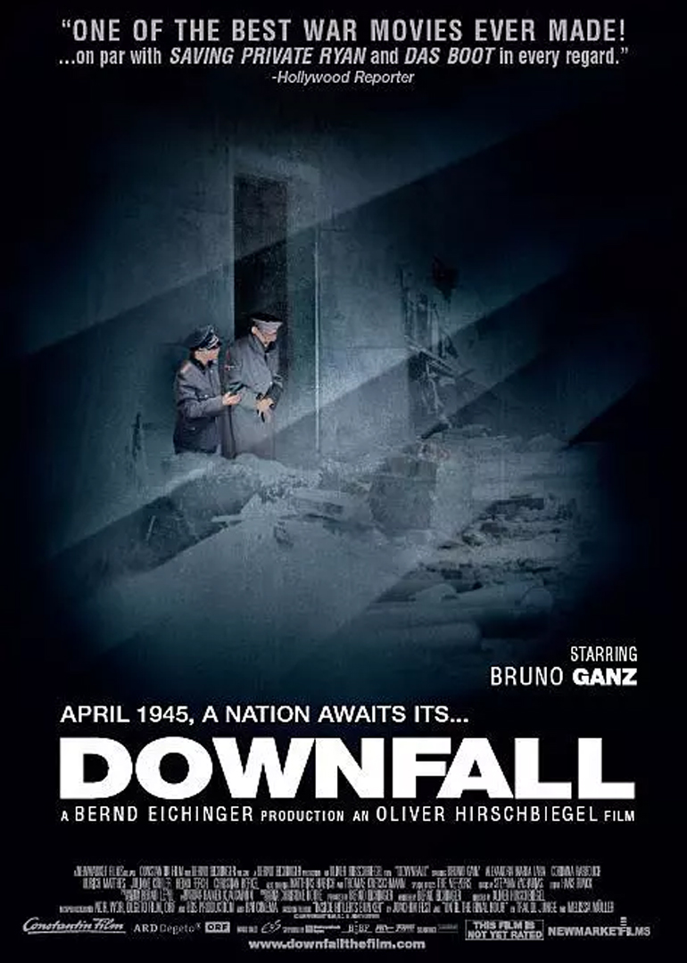 这是一部纪实性电影,逼真地反映了希特勒人生的最后12天,第三帝国最后的日子。苏联红军已经攻入柏林,希特勒(布鲁诺•甘茨 Bruno Ganz 饰)和情妇爱娃(茱莉安•柯勒 Juliane Köhler 饰)也躲到了掩体下。爱娃知道自己是来陪希特勒一起共赴黄泉的,但她并不后悔。即使在她向希特勒为妹夫求情遭拒绝后,她也和希特勒一起举办了最后一次的婚礼。希特勒的忠实追随者戈倍尔(科琳娜•哈弗奇 Corinna Harfouch 饰)决心全家一起陪着元首殉葬。他共有7个孩子,他和妻子坚决不让自己的孩子们在没有帝国的天空生长,在希特勒和爱娃自杀后也一同自杀。令人不胜感慨。历史的真实通过镜头一幕幕重现。
